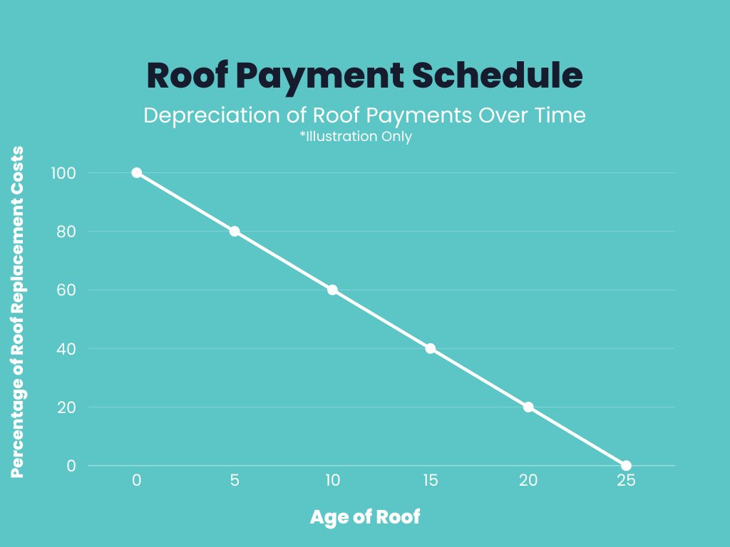 It is becoming more common for insurance carriers to change a policy to, a “roof payment schedule” or “scheduled roof depreciation”. This is a variation of an ACV policy. It predetermines the payout amount based on a sliding scale tied to your roof’s age, offering a clear and predictable (but often lower) settlement.